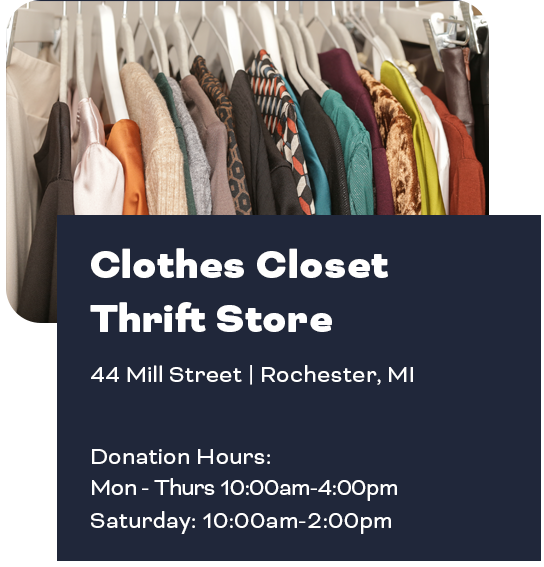 Neighborhood House Clothes Closet Thrift store offers a wide selection of affordable clothing for individuals and families in the community. Clothes Closet thrift store is always grateful for donations, as every contribution helps support our community's needs.
